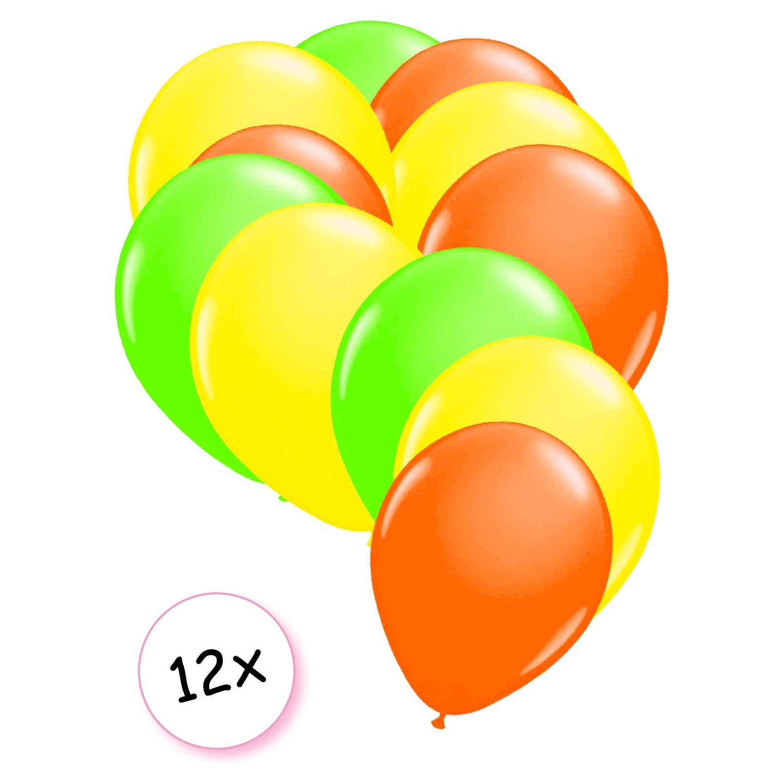 Ballonnen Neon Groen, Neon Geel & Neon Oranje 12 stuks 25 cm